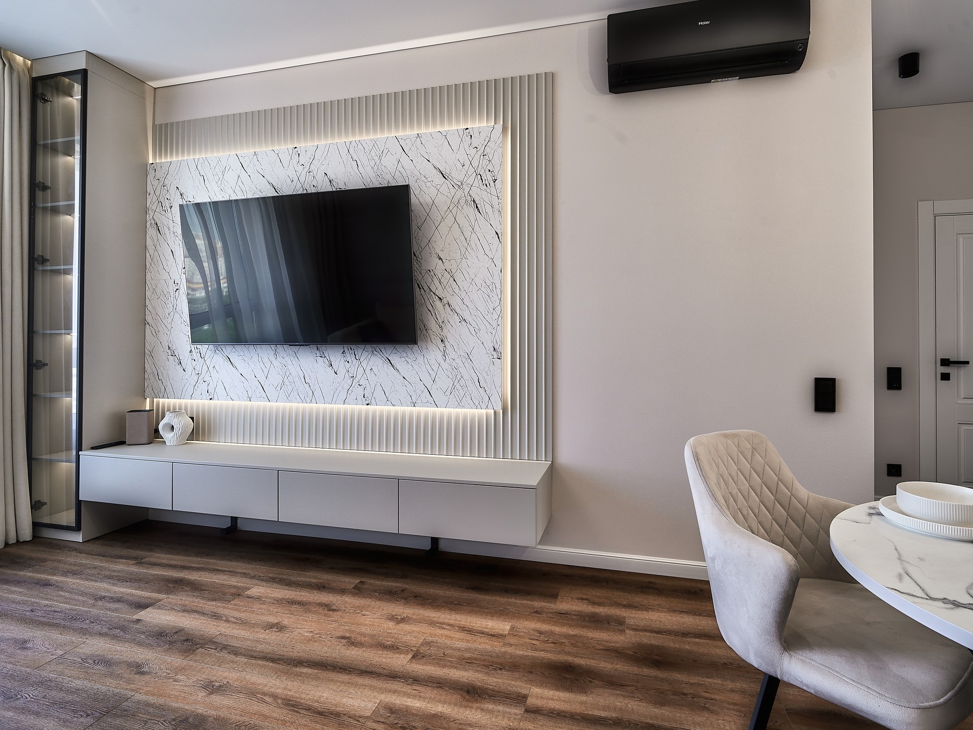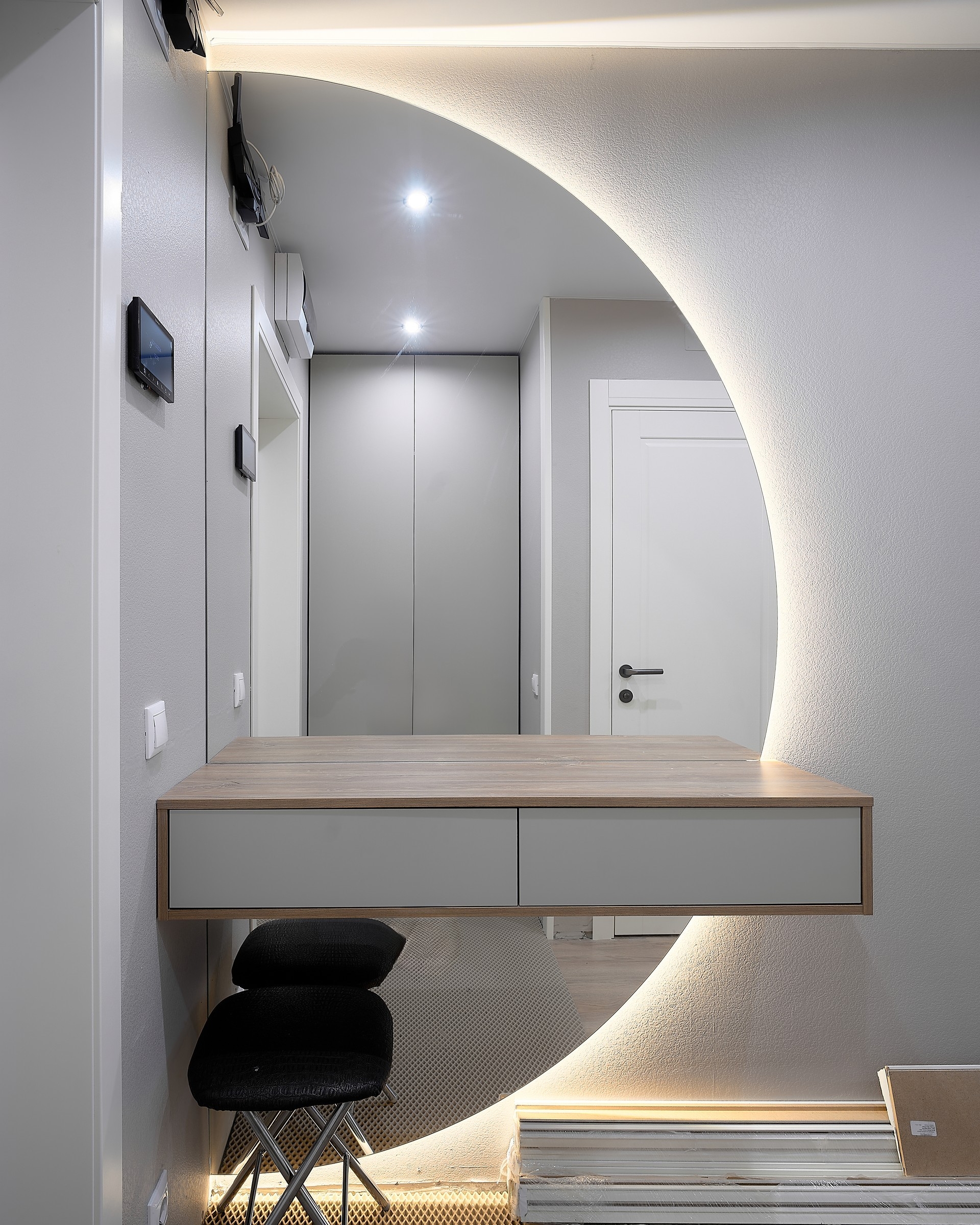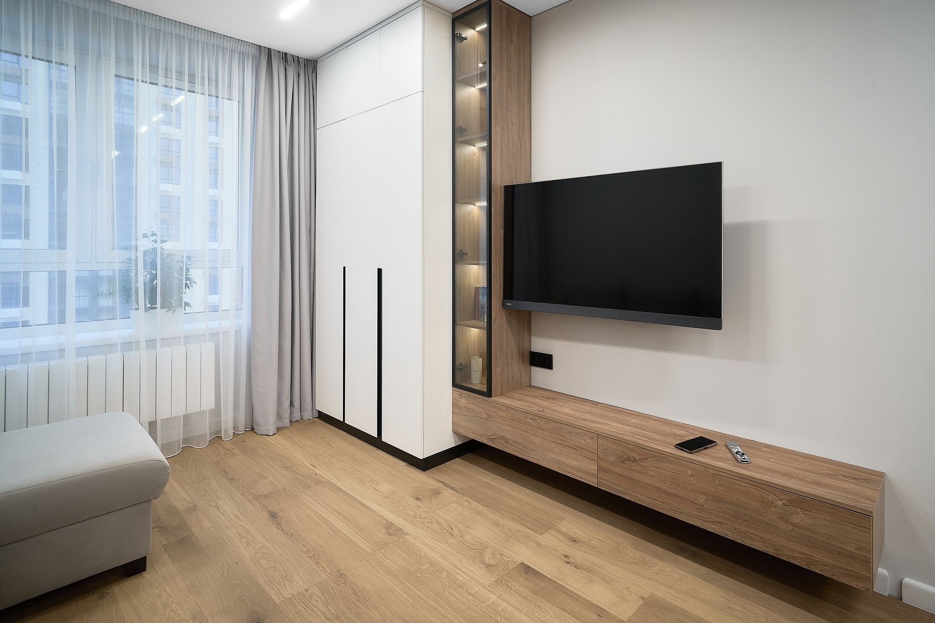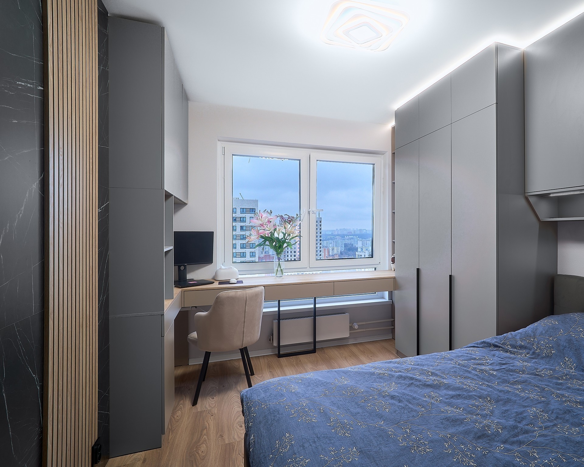 При согласовании предварительной стоимости к вам приезжает наш специалист с раскладками цветов и материалов, делает контрольный замер помещения и консультирует вас по оставшимся вопросам.