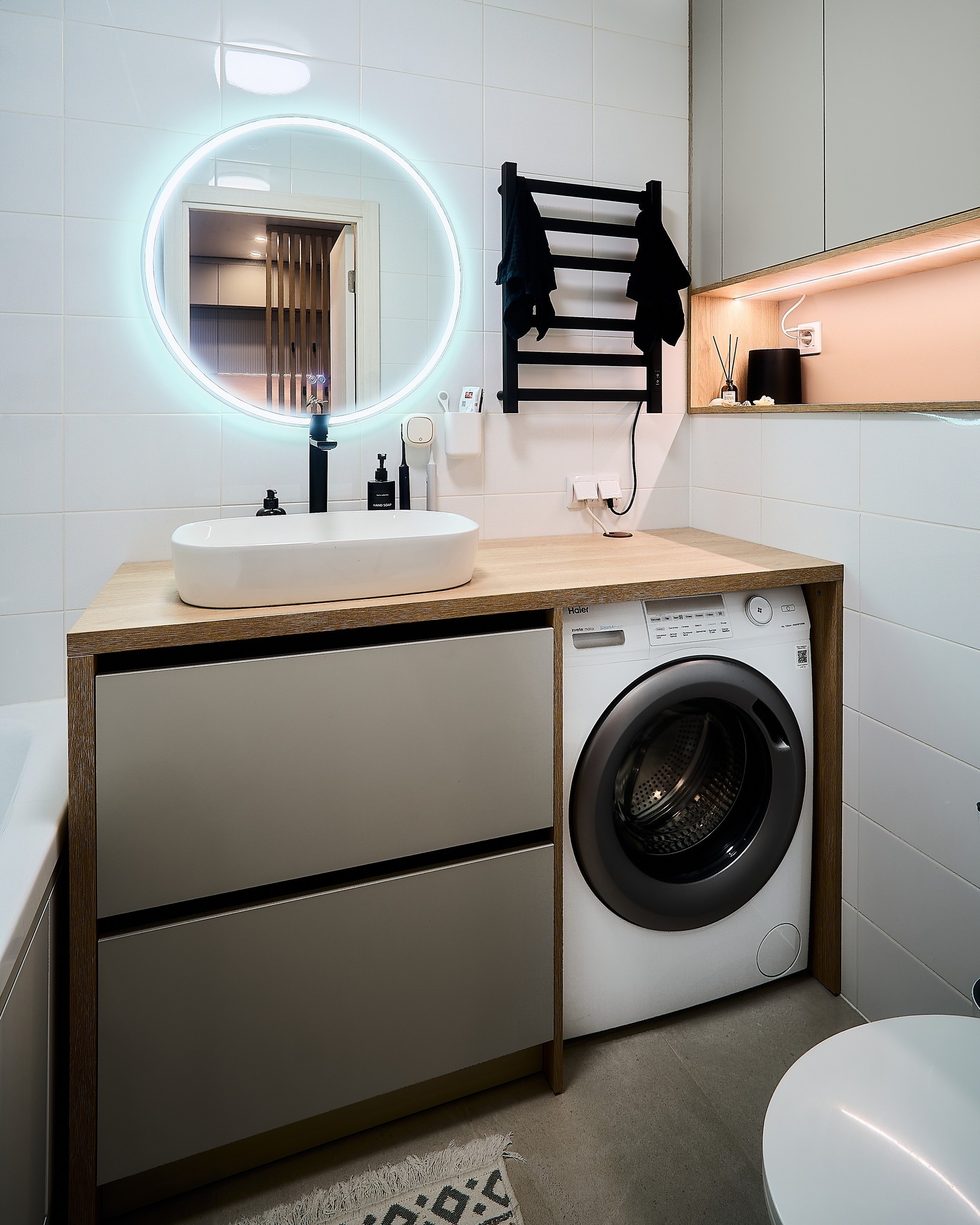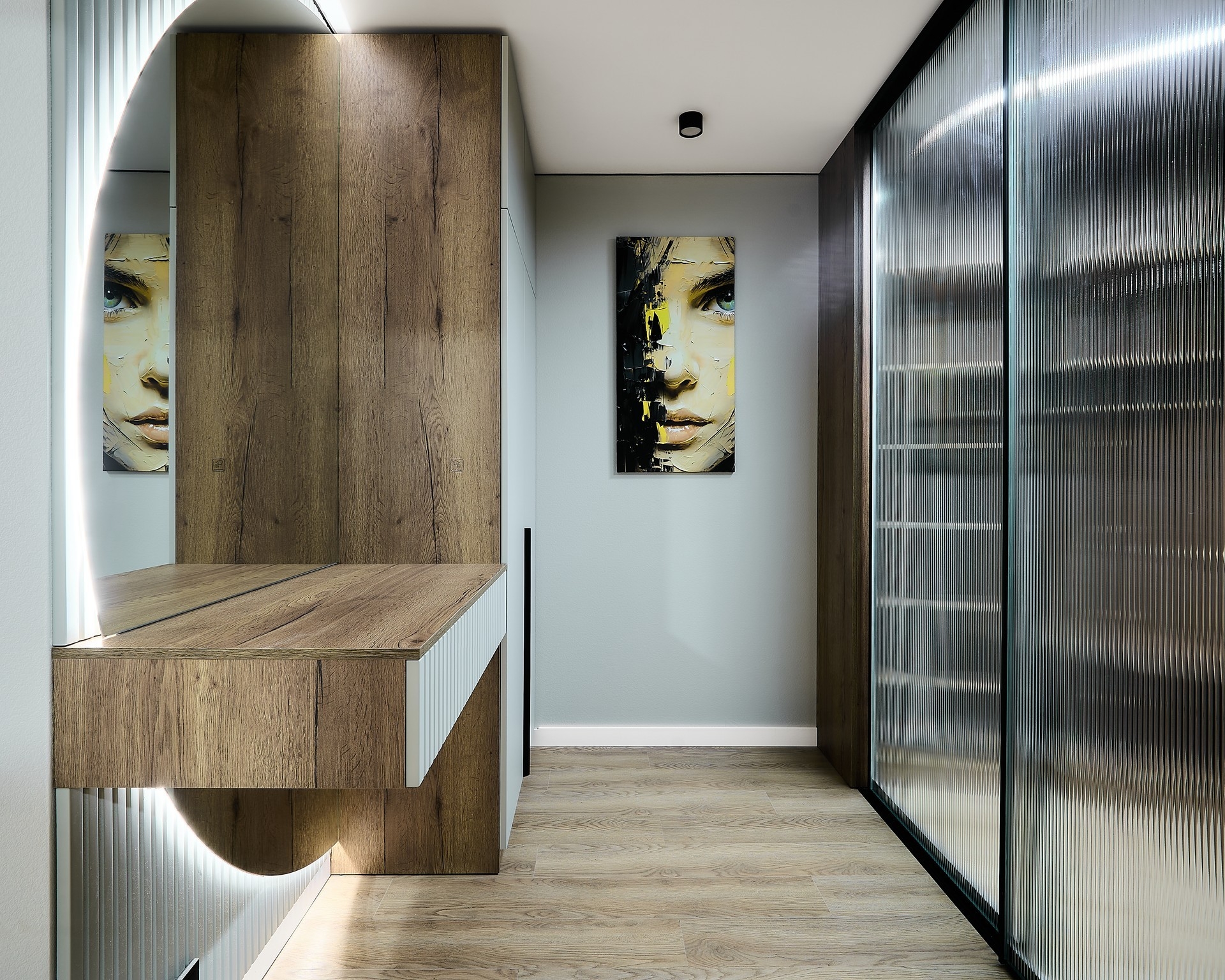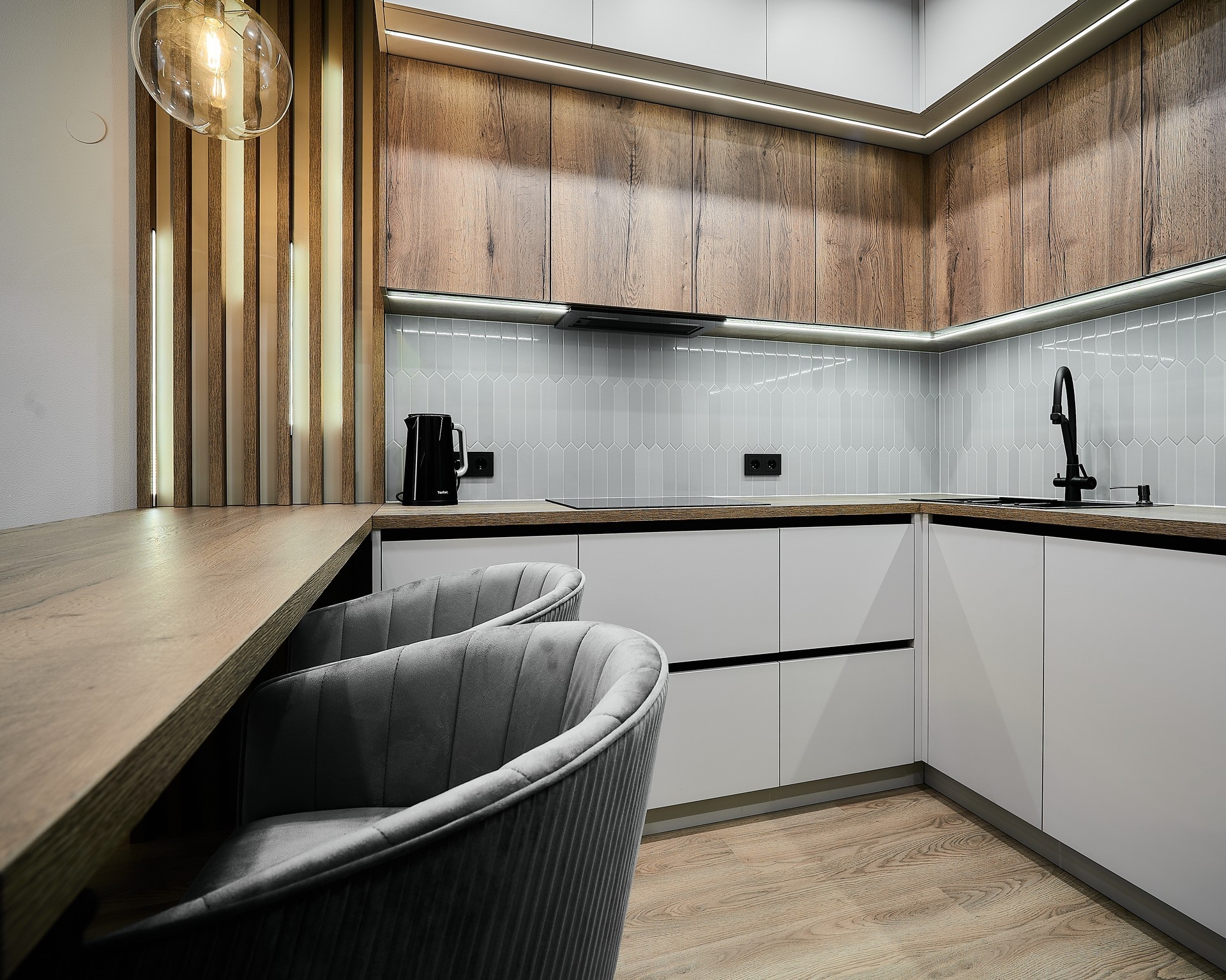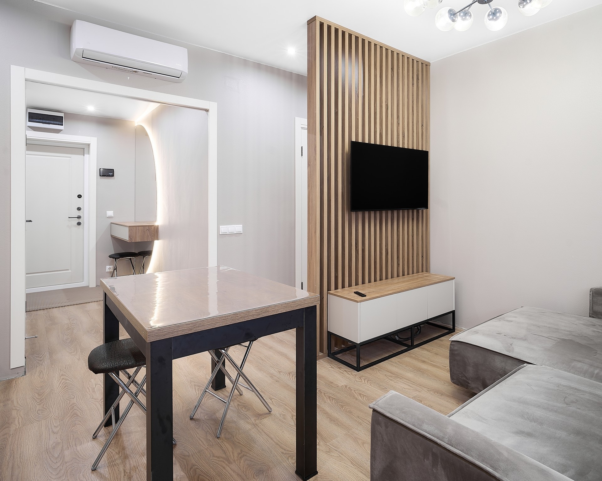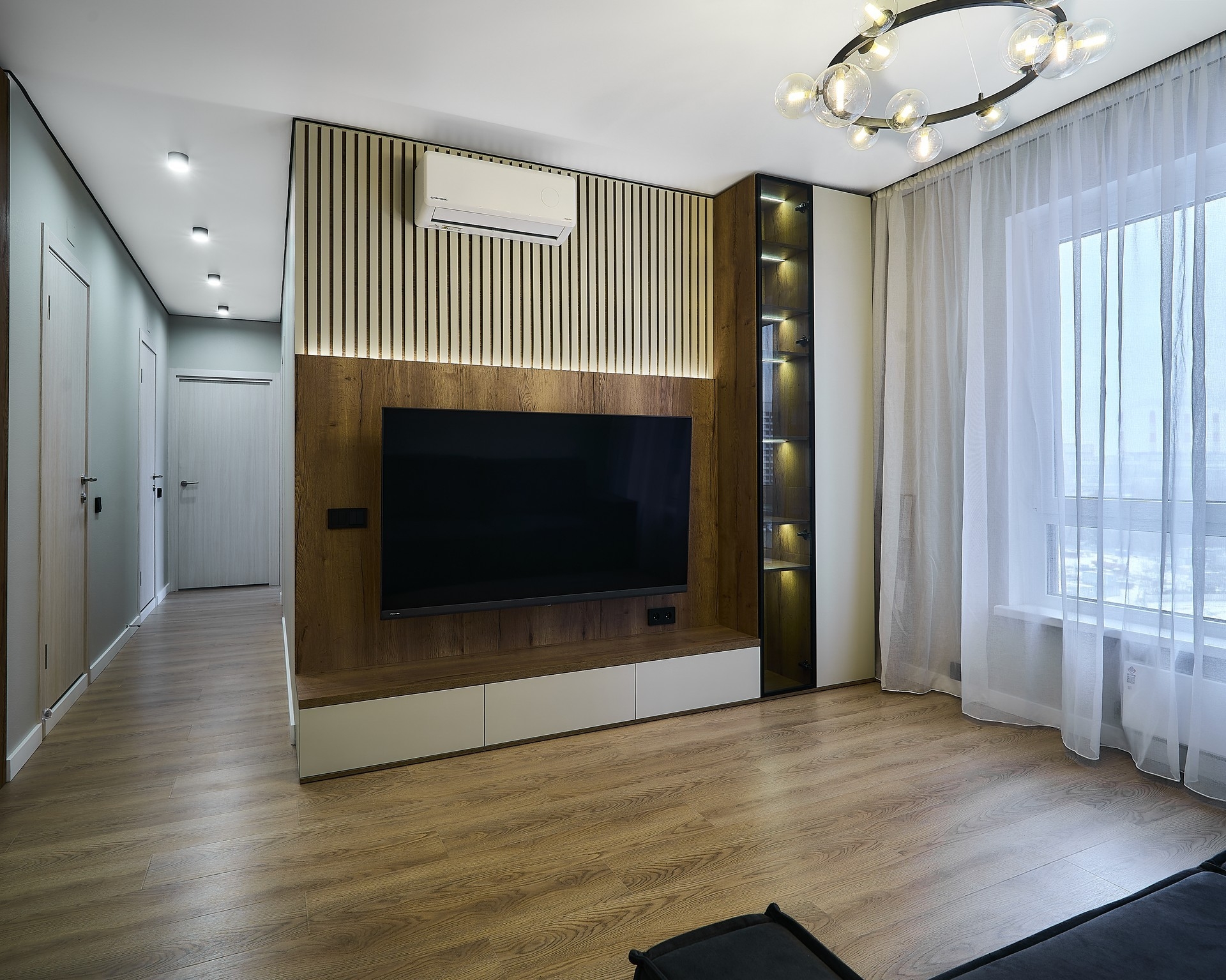 При согласовании предварительной стоимости к вам приезжает наш специалист с раскладками цветов и материалов, делает контрольный замер помещения и консультирует вас по оставшимся вопросам.